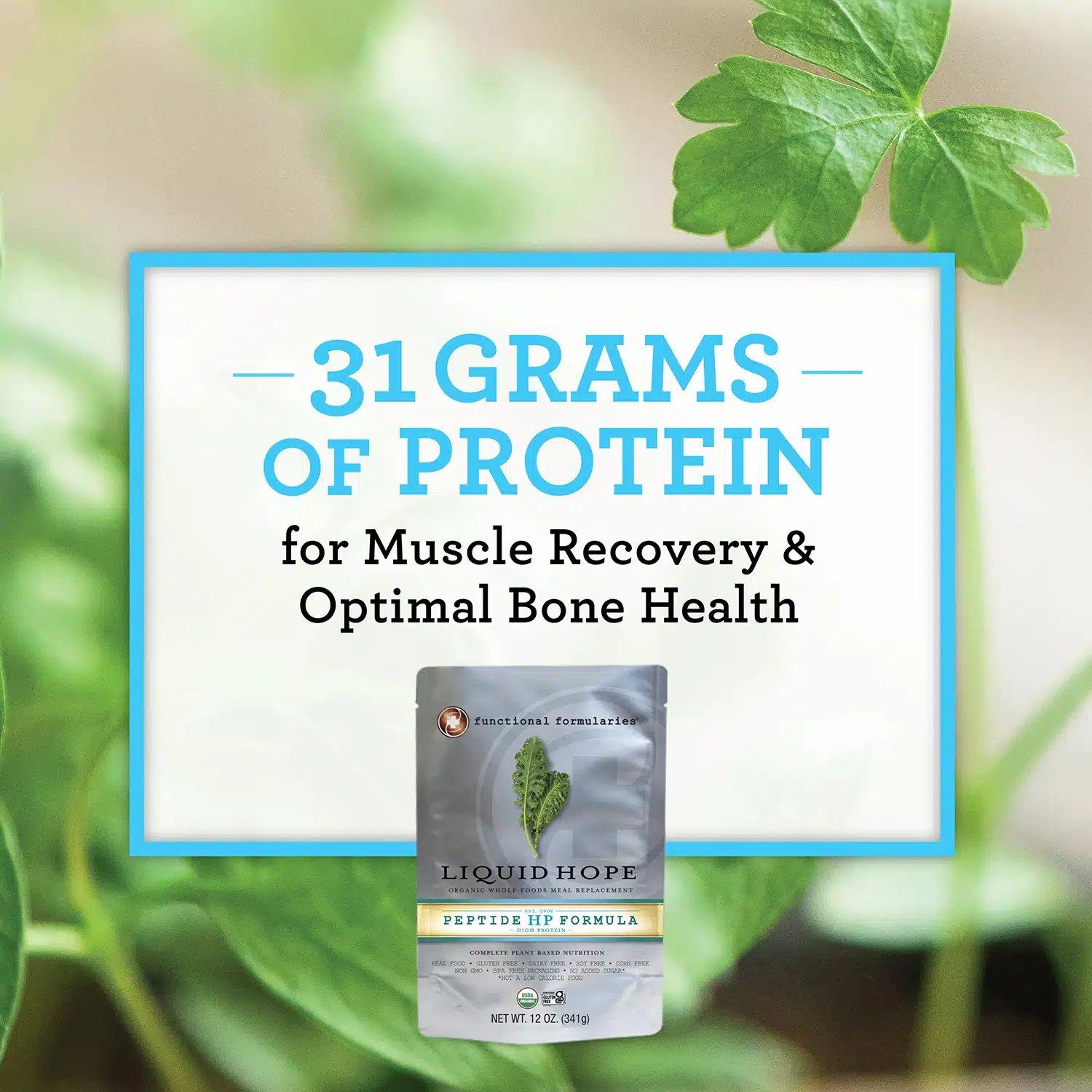 Liquid Hope Peptide High Protein contains 31 g of protein to help support lean muscle mass and strong bones. Formulated for adults to provide complete nutrition. Support muscles. Protect bones. Nourish the body.